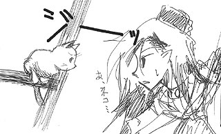 リドはネコと目が合うとしばらくネコとにらめっこして動きません。